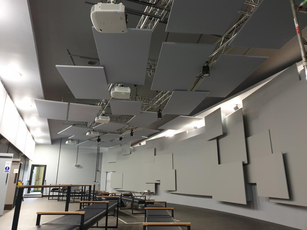 Acoustic Advice were called in to assess the space acoustically and asked to produce a design which would resolve the long reverberation time and make it suitable for a loud soundtrack with both sustained sounds and sharp impulse sounds of explosions etc. Speech intelligibility was also a concern as the soundtrack was very informative and designed for a wide range of age interests.